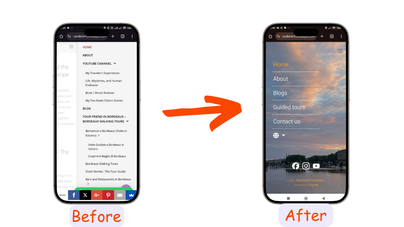 On mobile, there were way too many links hiding more than half of the page, which made it difficult to enjoy the stories. He had to put in his social media links, so we changed the design to include his socials in a footer that does not display over the blogs.